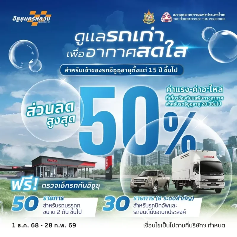ดูแลรถเก่า เพื่ออากาศสดใส! อีซูซุมอบส่วนลดสูงสุด 50% และตรวจเช็กฟรี