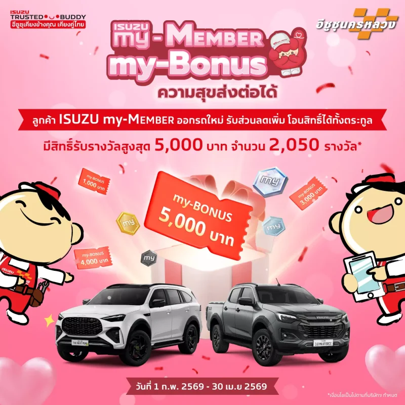 ISUZU my-MEMBER my-Bonus ความสุขส่งต่อได้ | รับส่วนลดเพิ่มสูงสุด 5,000 บาท