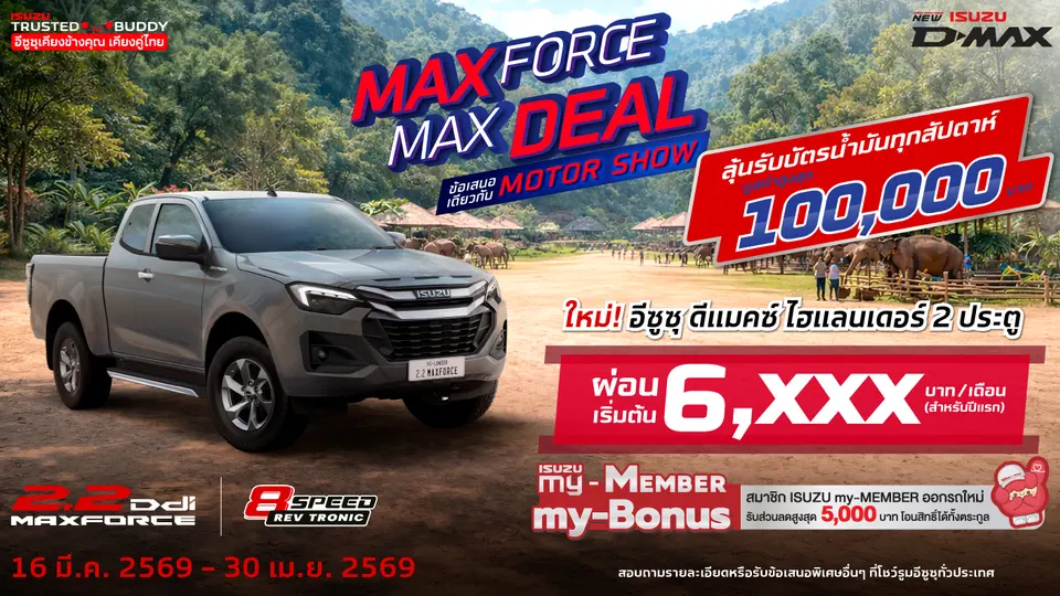 ประกาศรายชื่อผู้โชคดี อีซูซุนครหลวง MAXFORCE BIG THANKS ครั้งที่ 5