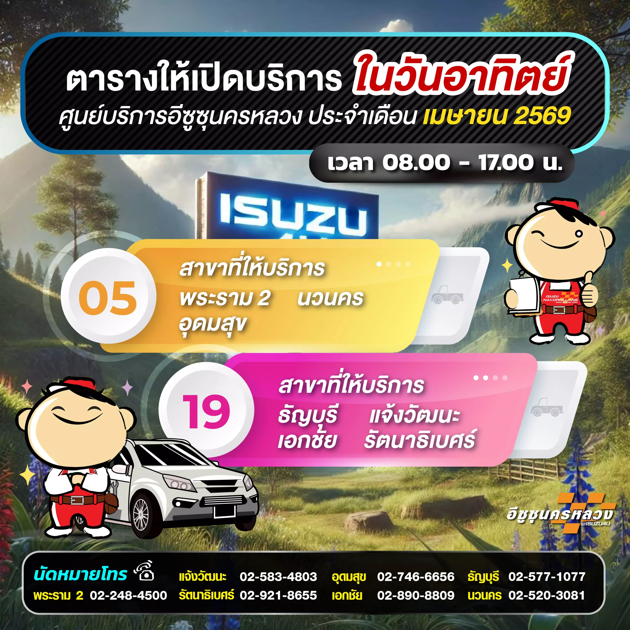 แจ้งวันเวลาทำการ! ศูนย์บริการอีซูซุนครหลวง เปิดให้บริการตามปกติ ในวันมาฆบูชา 2569